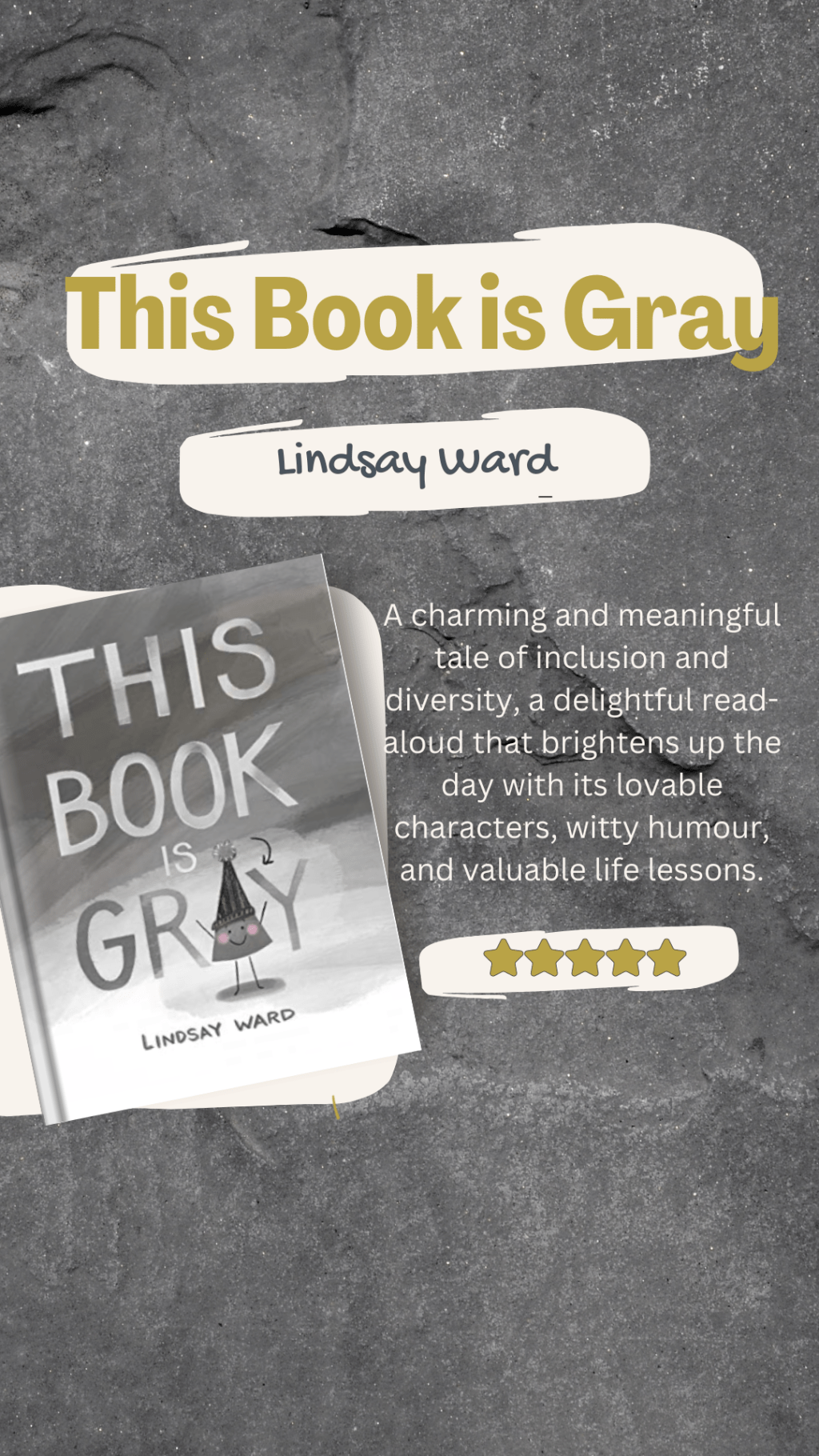 This book is an absolute gem! It offers a delightful and engaging story centred around colours while delivering a clever and subtle lesson on the importance of inclusion, diversity, and empathy. Gray, the lovable protagonist, longs to belong and share his unique story. However, he feels excluded by the other colours, who fail to appreciate his distinctiveness. Determined to make his mark, Gray creates a book with only grey characters. Yet, as he embarks on his creative journey, he discovers that he needs the assistance of his vibrant friends to make the book more captivating and appealing. Along the way, he learns that everyone possesses something valuable to contribute and that being different is wonderful.