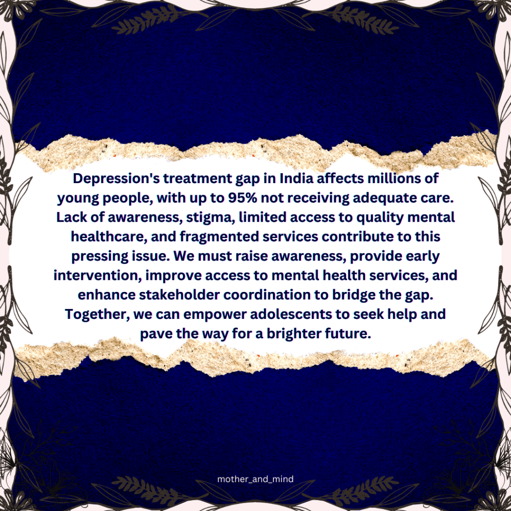 Closing the treatment gap for depression in India is a challenging yet essential goal. By increasing awareness, improving access to quality mental healthcare, and enhancing coordination among stakeholders, we can significantly improve the lives of millions of adolescents affected by depression. Everyone, including adolescents, must work together to achieve this goal and contribute to the country’s social and economic development.