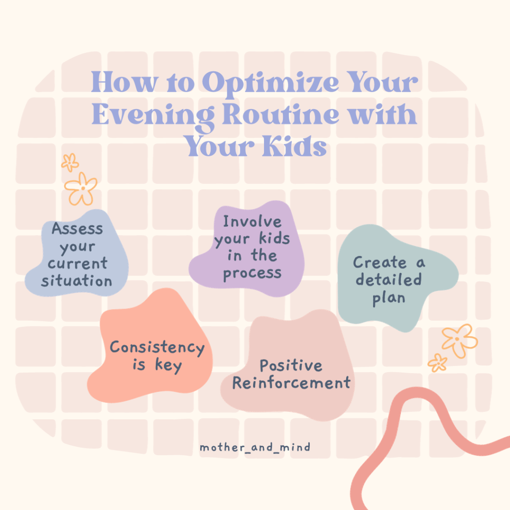 - Assess Your Current Situation: Understand what’s wrong with your current evening routine. Consider when you want your kids to go to bed, the time available between dinner and bedtime, essential tasks, and any obstacles. Document your answers to identify areas for improvement.