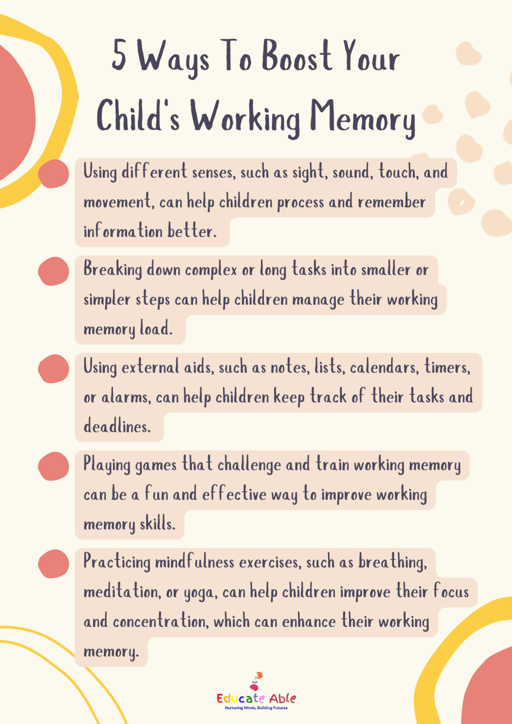 The good news is that there are methods to help enhance your child’s working memory skills. Here are some expert tips and tricks for parents and educators to support functional memory development in children: