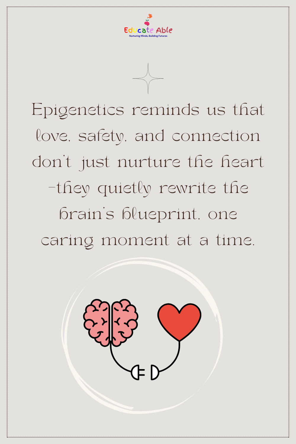Think of your child’s DNA like a bookshelf. All the stories (genes) are already there. But epigenetics is like the little Post-it notes, bookmarks, or even locks on some of those books. These “markers” decide which genes are read, when, and how loudly. And guess what influences those markers?